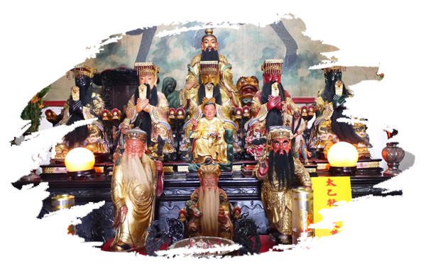 配奉神祇:元始天王 太元聖母 獨角青牛太上老君 無上元君 太一元君